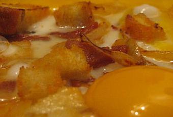 Laisser colorer, puis casser délicatement les oeufs par dessus. Laisser cuire quelques minutes et servez aussitôt.
