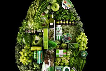 Ces oeufs mettent en scène de manière remarquable les packagings, fruits et légumes d'une même couleur.