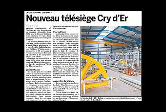 REVUE DE PRESSE - Une entreprise saint-galloise met en construction le futur télésiège de Cry-d'Er-Bellalui , explique ce matin Le Nouvelliste sous la plume de Pascal Claivaz. Il transportera jusqu'à 2400 passagers à l'heure, sur 1500 mètres, remplaçant deux installations vétustes. Mise en service: l'hiver prochain.Bartholet Maschinenbau AG (BMF) est en train de construire un télésiège débrayable (type TSD4) pour le domaine skiable de Crans-Montana. Il s’agit d’une première suisse pour l’entreprise de Flums, selon Le Nouvelliste. Voici ce qu'écrit Pascal Claivaz: