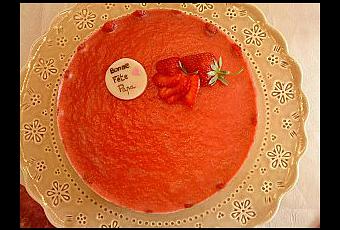 Faire chauffer le 1/4 de purée de fraises restant et y faire fondre les feuilles de gelatine essorées. Incorporer ce mélange à votre chantilly fraise.