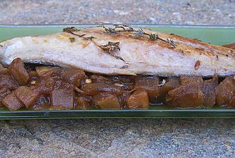 Disposez un filet sur un lit de compote et dégustez chaud.