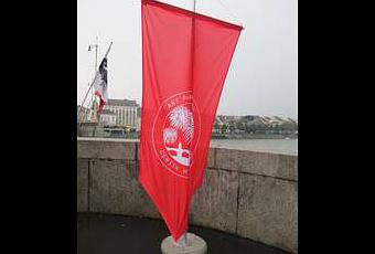 Munie du plan, d’un sac style “baise-en-ville” aux couleurs d’Art Parcours, et d’une bouteille d’eau gracieusement offerte, je gagnais le départ sur la terrasse (Pfalz) de la Cathédrale qui était ventée et quelque peu arrosée le jeudi, soir du vernissage, mais la vue vaut largement le déplacement. A chaque étape il fallait recueillir un tampon auto-collant qui permettait l’accès à l’installation.