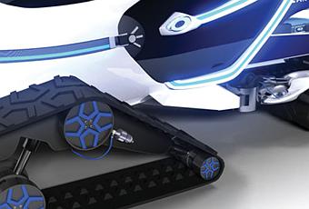 Pour déplacer sur la neige et la glace avec facilité, avec des bandes de caoutchouc grande, semblable à chenilles et les réservoirs hydropneumatiques.