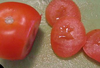 3) Superposer 3 morceaux de tomates pour représenter les pétales.