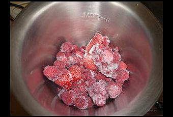 Pour ce faire nous aurons besoin de 500 g de fruits congelés (ici 300 g de fraises et 200 g de framboises), 80 g de sucre glace et un blanc d'oeuf.