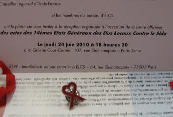 Les actes des 14èmes Etats Généraux d’Elus Locaux Contre le Sida, qui se sont déroulés en novembre dernier au conseil régional d’Ile-de-France, sortiront ce soir à l’occasion d’une petite réception à l’issue du bureau national qui se tiendra dès 18 heures.