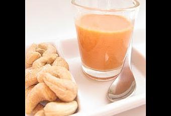 Mettez dans une casserole le lait de coco, la tomate, le bouillon de légumes, la citronnelle. Portez à ébullition et laissez frémir 5 minutes. Mixez puis passez au chinois. Réservez au frais. Remuez une dernière fois avant de servir dans des verres.