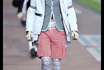Moncler utilise Thom Browne comme un laboratoire d'idées car finalement à y regarder de près, pièce par pièce, tout est portable. Une façon de sortir du territoire de la doudoune et nous amener progressivement vers tous les sports d'hiver ou d'été.