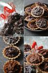 Mélangez quelques buchettes d'amandes avec du chocolat fondu puis déposez des petits tas dans des fonds de tartes en pâte sablée (achetés tout prêts par manque de temps !) préalablement remplis de crème de marron… plus simple… je ne trouve pas !! Effet garanti…
