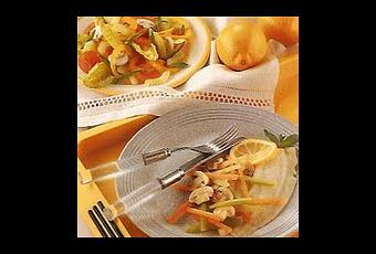 - Tailler 4 grands carrés de papier aluminium ; y déposer les filets ; les recouvrir avec champignons, carottes et céleri.