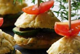 Déposez 2 rondelles de courgette, puis 2 petites tranches d’aubergine avant de reposer le chapeau de la madeleine.