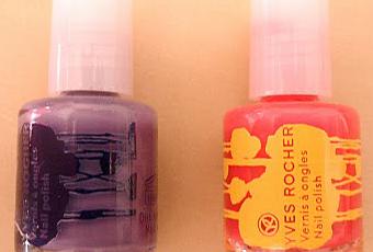 Je suis très vernis en ce moment j'en change environ tous les deux jour, c'est la folie! Voici mes deux dernières acquisitions, des mini vernis Yves Rocher (je ne suis pas rancunière, même si ils n'ont toujours pas répondu à mon mail!). Collection de l'été, à gauche "lavande" et à droite "rose à l'eau". J'adore ces deux couleurs flashy, le "lavande" s'applique en 2 couches, pour le "rose à l'eau" comptez plutôt 3 couches.Donc les couleurs sont magnifiques vous l'avez compris je pense, mais le petit format c'est vraiment pas pratique. Déjà le pinceau est tout fin, pour faire un ongle il n'y a pas assez de vernis il faut le retremper au moins une fois. Et la contenance, 3 ml à mon avis si je me fait 4 fois les ongles avec le flacon est vide.