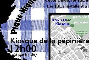 Si tu n'as rien de prévu demain samedi aux alentours de midi et que tu traines le nez en l'air autour du Kiosque de la Pépinière à Nancy... viens nous rejoindre au pique nique des joyeux (forcément) blogueurs (ou pas) lorrains (pas obligatoire, non plus)!