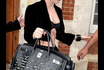 Après avoir porté un Birkin blanc graffité, voici Lady Gaga en birkin à clous.