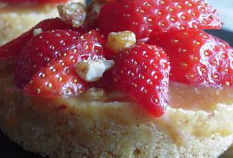En ce moment, j'ai ma période pâte biscuitée, je trouve que cela a plus de goût, plus de croustillant qu'une pâte classique car vous pouvez l'agrémenter de fruits secs, graines ...Alors aujourd'hui je vous propose une recette rapide et très simple 100 % gourmande, 100 % plaisir !!! Une tartelette au caramel coulant et fraises, pâte biscuitée aux amandes.