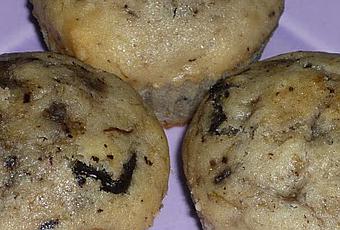 Mélanger la farine tamisée avec la levure, le sucre et le sel.Dans un autre saladier, réduire les bananes en purée. Ajouter l'œuf, l'huile et le lait et battre le mélange jusqu'à ce qu'il devienne homogène. Incorporer la préparation précédente au mélange sec (farine et sucre). Mélanger jusqu'à incorporation du liquide par la farine.Ajouter les pépites de chocolat, mélanger sans travailler la pâte.Enfourner et cuire th 6 pendant 15 minutes.