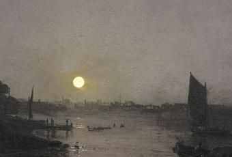 Turner, “Clair de lune, étude à Millbank”, (petit tableau de 31,5×40,5cm) exposé en 1797 à la Royal Academy