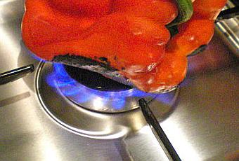 Faites griller vos poivrons sur la flamme du gaz …..oui direct sur le gaz …..Ne me parlez pas des poivrons grillés au four , ils n'ont pas le même goût , au four ils cuisent , à la flamme ils restent craquant et garde toute leur saveur …....