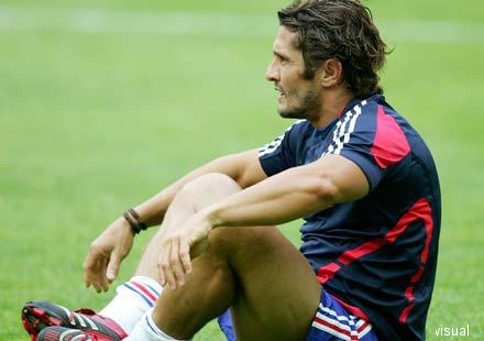 Hélas pour lui, il jouait plus ou moins voire carrément au même poste. Je suis lucide, Pirès n'est pas le plus beau mâle de ma sélection mais c'est celui que je préfère. Et puis il a l'air vachement sympa. Pirès a toujours été mon chouchou et il le reste. J'assume ma subjectivité. J'adore le voir et l'écouter sur TF1 après chaque match. Robert je t'aimeuhhh ! Voilà, c'est dit. Voyez comme il a l'air content d'apprendre la nouvelle...