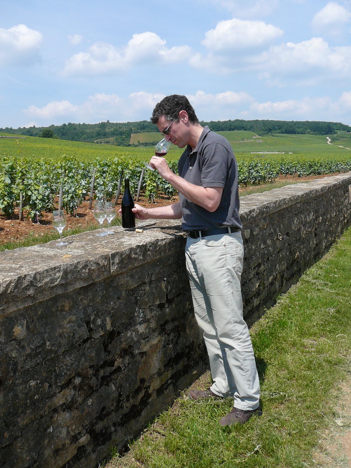 Première étape: un pique-nique sur le muret de la Romanée-Conti.