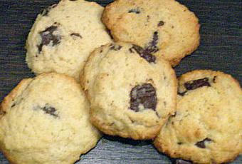 Dans un saladier , battez le beurre en pommade avec les sucres et la vanille . Ajoutez l'oeuf et battez encore 2 mn , incorporez petit à petit la farine , la levure et a noix de coco râpée . Concassez le chocolat en petit morceaux , ajoutez-le . Remuez le tout avec une spatule pour bien mélanger .
