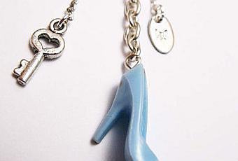Chaussure bleu clair (le verre c'est trop cassant !) et clef en forme de coeur ...