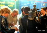 Photo : sur cette photo empruntée à www.sitesquash.co.uk vous pouvez apercevoir Framboise Gommendy en pleine action en train de recueillir les sensations de Greg au soir de sa demi-finale victorieuse. Framboise est une passionnée de squash qui sillonne la planète pour suivre le circuit et alimenter son site internet, devenu au fil des mois incontournable dans l'univers du squash.
