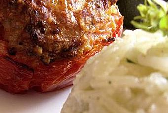 Remplissez les légumes avec la farce obtenue et formez de petites boulettes de viandes avec la farce restante. Au besoin vous pouvez finir votre chapelure dans cette farce restante et y ajouter quelques dés de tomates.