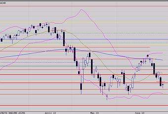 Seulement la réaction haussière de ce jour se limite à une tentative vers la résistance immédiate des 3463 points, légèrement dépassée, mais stoppée par l'axe médian du marubozu noir d'hier.