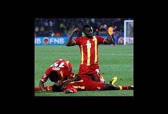 A la Coupe du monde de football qui bat son plein en Afrique du Sud (voir Coupe du monde de foot : quelles vaches, ces Suisses !), le Ghana porte tous les espoirs africains, après la sortie prématurée de l'Algérie, de la Côte d'Ivoire, du Cameroun et de l'Afrique du Sud. Ayant éliminé les Etats-Unis (à gauche), les Black Stars se retrouvent parmi les huit meilleures équipes du tournoi. Ils disputeront vendredi un quart de finale qui pourrait être historique puisque, s'ils l'emportent sur l'Uruguay, ils seront la première équipe du continent à accéder aux demi-finales.
