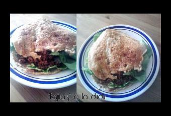 Faire cuire la viande avec les épices/assaisonnement de votre choix. Faire cuire un oeuf au plat. Disposer la viande, l’oeuf & les feuilles de salades entre les deux galettes & régalez-vous!