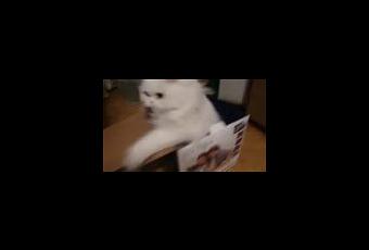 son maitre vient titiller son chat dans sa boite