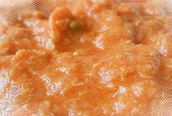 Mettre le contenu de la boîte de thon, ainsi que les petits légumes, dans un mini-hachoir. Mettre en marche jusqu'à ce que l'ensemble soit bien mixé.