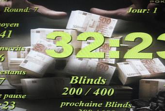 Il reste 127 joueurs, la moyenne est de 26.141, et les blindes sont passées à 200/400, ante 25.