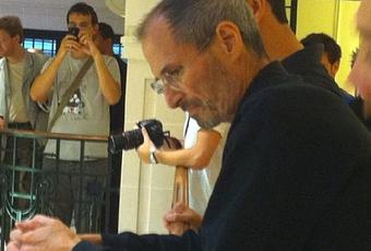 Lors de l'inauguration hier du nouvel Apple Store de l'Opéra à Paris, les visiteurs ont eu une drôle de surprise en voyant le Boss en personne parcourir les allées du temple.