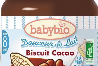 Dernière née de Babybio : douceur de lait, une crème dessert onctueuse constituée à plus de 80% de lait de suite Babybio source de calcium et agrémentée de biscuit ou de biscuit et cacao.