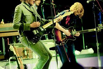 Dead Weather @Batalcan 30 juin. La chaleur du Bataclan est tout simplement insupportable, ma grippe n’arrange rien (si vous êtes contaminé c’est moi.). La première partie Cavaliers, bien que supportable, s’éternise tandis que notre seuil de tolérance est réduit à zéro par ce climat tropical. Heureusement, les Dead Weather ne tardent pas à arriver. Le décor-oeil bleu un peu Neverwinter Night (Noté la brillante référence)- est installé, les Dead Weather s’installent. On remarquera vite que le public est largement composé d’hommes…de grands hommes et tous au premier rang. Du coup, c’est un peu la guerre pour trouver un angle de vue acceptable. Après quelques rebondissements, le public se calme et tout devient mou. Je me rend compte que mise à part You Just Can’t Win (complètement remodelé pour l’occasion) et The Difference Between Us, le concert des Dead Weather sonne incroyablement creux. Moi, qui avait tant adoré leur deux albums, je suis alors forcée de constater que ce ne fut qu’une façade. VV sur-joue un peu moins que pour les Kills (étrangement) mais reste très peu crédible. Jack White, toujours un peu pète gueule, réjouira toujours les fans par sa seule présence (compris moi). Jack Lawrence, toujours aussi efficace mais totalement discrédité par cette saleté de moustache. Puis, au final, ce n’est que Dean Fertita, qui était la grande inconnue pour moi, qui marquera vraiment ce concert. Au final, j’en sors deux fois plus malade, déçue, trahis, suante, faible… Malgré quelques bons moments indéniables, je ne peux qu’être en colère et me demander : à quand le prochain White Stripes?!