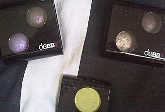 En fait euh... comme vous l'avez lu dans mon article précédent, j'ai donc reçu mon colis Agnès B et je précise ici que j'ai été le cherché à la poste (RTL= Raconte Ta Life), bref en sortant de là, je suis passée devant Marionnaud COMPLETEMENT PAR HAZARD je vous jure ... Et je me suis dit "pourquoi ne pas aller regarder rapidement si je trouve un pinceau à fond de teint?". Petit tour rapide dans le magasin, en passant par le corner de Gosh (heureusement rien ne m'a tenté). Pour une fois je demande conseil à une vendeuse qui raconte n'importe quoi m'enfin bref, passons... je ne trouve donc pas mon pinceau. Et là mes yeux se figent devant le corner de Debby, marque que je ne connais pas, ou très peu, de nom en fait. J'ai vu de ces fards les filles ... à tomber!!! Des duos de fous, aux couleurs pigmentées et irisées à souhait. Mon sang n'a fait qu'un tour!!!