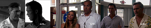 J'ai beau me creuser la tête, mais plus les épisodes de Burn Notice passent, moins il y a de choses à dire, j'ai l'impression. Ce n'est pas foncièrement mauvais, loin de là, j'ai passé d'ailleurs un bon moment devant ce 4e épisode. C'est juste que ça manque franchement d'originalité et les intrigues restent très simplistes. Prenez la prise d'otage de cette fois. Avec la Michael Westen/Gyver touch et le quelque peu de pression insufflé à l'histoire, ça reste très divertissant mais c'est aussi très revu et prévisible. Sérieusement, qui a cru une seconde que Michael et Sam finiraient en prison? Bon, sinon, le fil-rouge, à défaut d'être devenu plus compréhensible pour moi (j'ai abandonné tout espoir de comprendre les raisons des personnages de faire telle ou telle chose pour faire avancer l'enquête), il nous a offert un sympathique et efficace duo, formé de Fi et Jesse. On a même droit grâce à eux à un tout petit peu de dépaysement avec un passage éclair aux Bahamas. Je ne sais pas encore si Jesse va intégrer définitivement l'équipe par la suite, mais on le voit bien ici, le traditionnel trio gagnerait à devenir un quatuor.