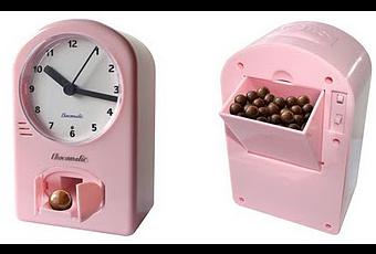 J'ai donc trouvé un petit remède pour vous changer de cette obsession : Une petite horloge bien kitsch qui conservera toute votre attention non pas parce que vous souhaitez vous échapper mais parce qu'elle délivre son "précieux" : une friandise ou un chocolat(M&M;'s ou Maltesers).
