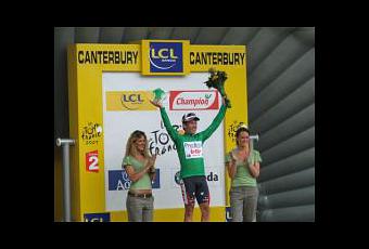 La bonne réponse était effectivement PMU. Si vous jetez un œil aux podiums du Tour 2007, vous constaterez que le logo PMU n'apparait pas sur les premiers maillots verts remis cette année là. Les hôtesses protocolaires n'étaient d'ailleurs pas celle du PMU, mais des hôtesses ASO.