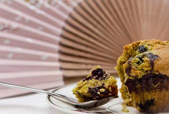 Ce muffin, je l’aurai bien dégusté avec une glace au thé vert matcha. Une glace qu’on ne trouve pas chez nous mais qui est excellente, peu sucrée et très rafraichissante. Les myrtilles donnent un côté francisé à ce petit gâteau et une touche acidulée.