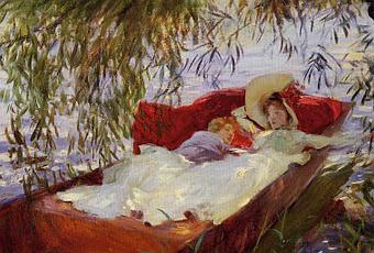 John Singer Sargent (1856-1925), Two Women Asleep in a Punt under the Willows ***Avec cette chaleur, je vous propose une petite sieste au bord de l'eau à l'ombre d'un saule pleureur,et vous souhaite un excellent week-end!