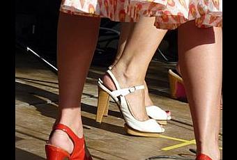 Trois chanteuses, robes vintage plissées et fleuries, hauts talons , lipstick et des voix sublimes: Kaat & Eva Jacobs et Jessie Willemse,