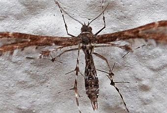 La famille des Pterophoridae sont de petits papillons ( ou Mites à Plume ) à la trompe bien développée, aux ailes plumeuses qui volent le soir au crépuscule voire pendant la nuit.
