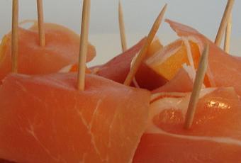 2. Melon au jambon serrano: Découpez un melon en cube puis entourez chaque cube d'une lamelle de jambon serrano. Fixez avec un pic