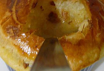 Verser la soupasse dans les bols, chapeauter de pâte feuilletée, badigeonner de jaune d'oeuf.