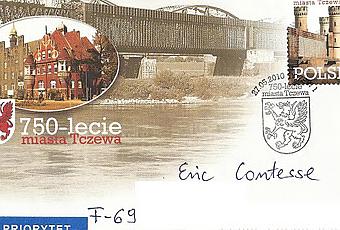 Le 1er FDC ci-dessous concerne le timbre, émis le 27 mai 2010, commémorant le 750ème anniversaire de la création de la ville de Tczew, située en Poméranie (nord du pays). Cette cité fut ainsi la 1ère localité polonaise à se doter d'un conseil municipal.