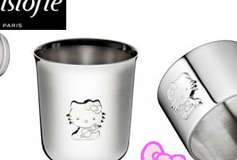 Collaboration avec la marque Française "Christofle" à l'occasion du 35 ème anniversaire d'Hello kitty, avec cette collection naissance où on y trouve cuillère,timbale et rond de serviette en métal argenté. En vente notamment sur l'eshop Joy Paris