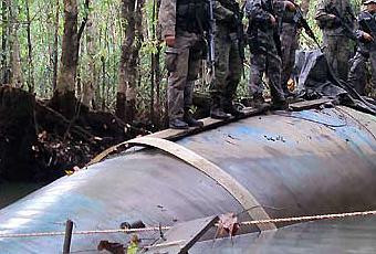 Ces soldats équatoriens sont très fiers de leur dernière prise, pêchée dans la mangrove il y a quelques jours, tout près de la frontière avec la Colombie. Il s’agit d’un sous-marin de 25 mètres
